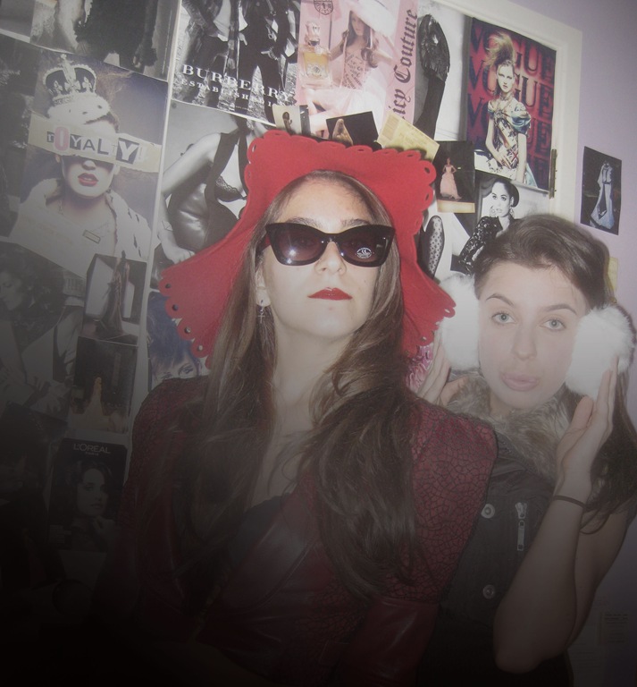 Wearing My very own RATAVOSI “Sinuous Senorita Jacket”being all snobby and that with my best friend in one of my wardrobe favourites, my biker vest with a fur collar and of course our accessories from ASOS, Red hat, cat eye sunnies and our fluffy white ear muffs.